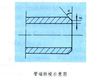 管端倒棱 用于輸送礦物、氣、油、水等介質(zhì)的管道,通常是由鋼管一根根地焊接起來的。為便于管間焊接,對管端外角需進(jìn)行倒棱(見圖)。根據(jù)鋼管用途不同,α角大小及鈍邊ζ值也不同,一般α=30。。為保證管端倒棱后α及ζ尺寸精確,要求鋼管不圓度及壁厚不均盡可能小。鋼管廠在管端加工時,管端倒棱和鋼管切斷在同一臺機(jī)床上進(jìn)行。國際上先進(jìn)的切管機(jī)均具有倒棱的功能。石油管接箍的加工在專門的機(jī)床上完成,除接箍料的定尺切斷外其他工序同管端加工類似。